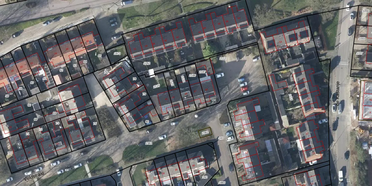 Het perceel waarop Veldstraat 45 staat heeft een oppervlakte van 147 m². Dit is een middelgroot perceel. De perceeloppervlakte wordt geregistreerd door het Kadaster. Gedetailleerde informatie over de maten van dit perceel kunt u vinden in het rapport Kadastrale kaart met maatvoering van Veldstraat 45.