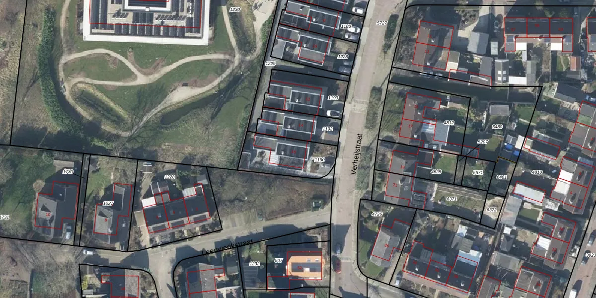 Het perceel waarop Verheijstraat 16 staat heeft een oppervlakte van 384 m². Dit is een groot perceel. De perceeloppervlakte wordt geregistreerd door het Kadaster. Gedetailleerde informatie over de maten van dit perceel kunt u vinden in het rapport Kadastrale kaart met maatvoering van Verheijstraat 16.