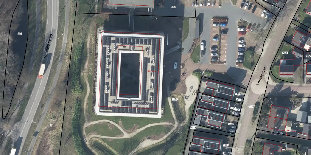 Het perceel waarop Verheijstraat 4-14 staat heeft een oppervlakte van 1,1 ha. Dit is een zeer groot perceel. De perceeloppervlakte wordt geregistreerd door het Kadaster. Gedetailleerde informatie over de maten van dit perceel kunt u vinden in het rapport Kadastrale kaart met maatvoering van Verheijstraat 4-14.