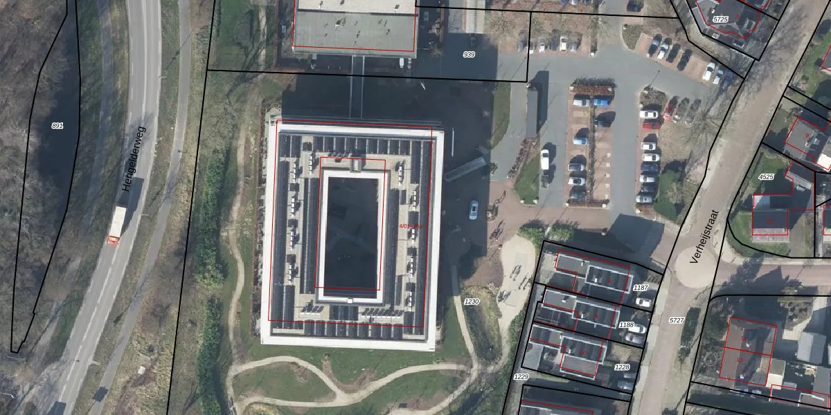 Het perceel waarop Verheijstraat 4-27 staat heeft een oppervlakte van 1,1 ha. Dit is een zeer groot perceel. De perceeloppervlakte wordt geregistreerd door het Kadaster. Gedetailleerde informatie over de maten van dit perceel kunt u vinden in het rapport Kadastrale kaart met maatvoering van Verheijstraat 4-27.