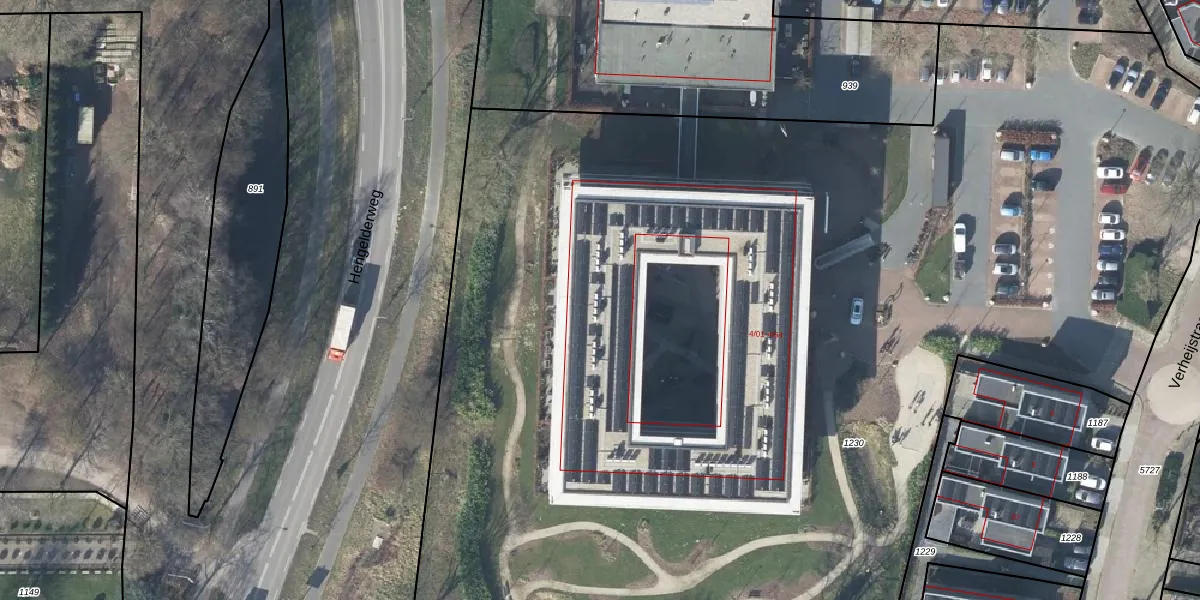 Het perceel waarop Verheijstraat 4-35 staat heeft een oppervlakte van 1,1 ha. Dit is een zeer groot perceel. De perceeloppervlakte wordt geregistreerd door het Kadaster. Gedetailleerde informatie over de maten van dit perceel kunt u vinden in het rapport Kadastrale kaart met maatvoering van Verheijstraat 4-35.