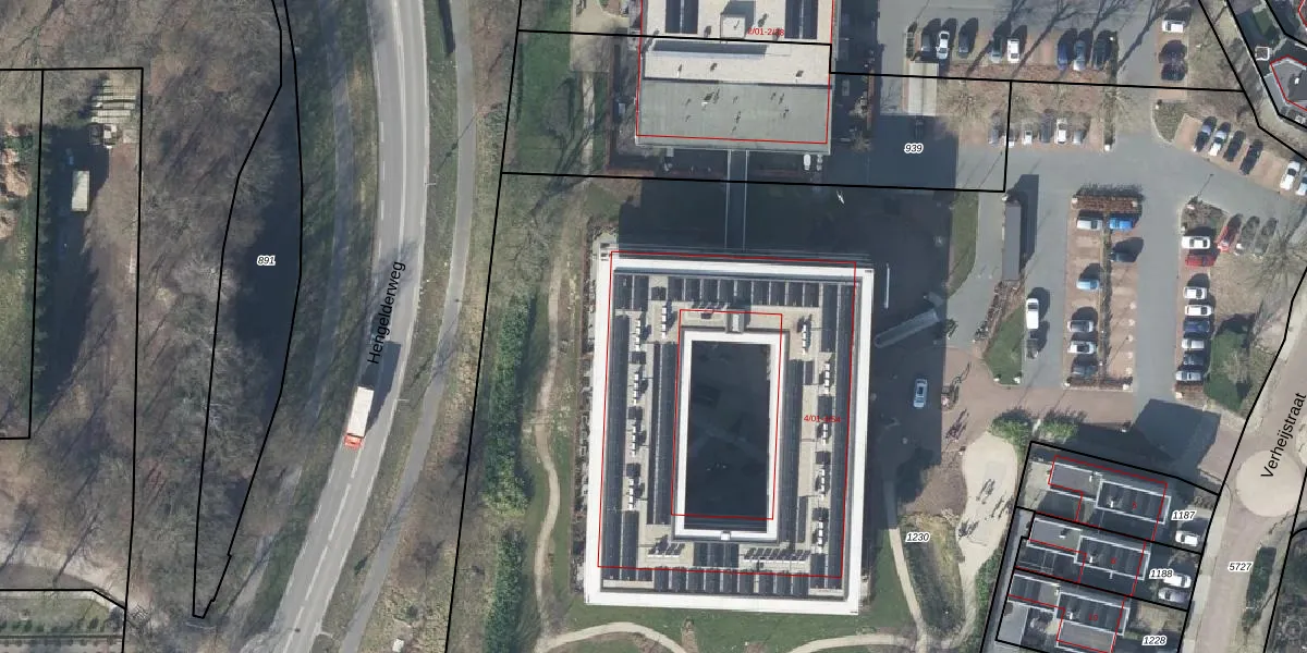 Het perceel waarop Verheijstraat 4-50 staat heeft een oppervlakte van 1,1 ha. Dit is een zeer groot perceel. De perceeloppervlakte wordt geregistreerd door het Kadaster. Gedetailleerde informatie over de maten van dit perceel kunt u vinden in het rapport Kadastrale kaart met maatvoering van Verheijstraat 4-50.