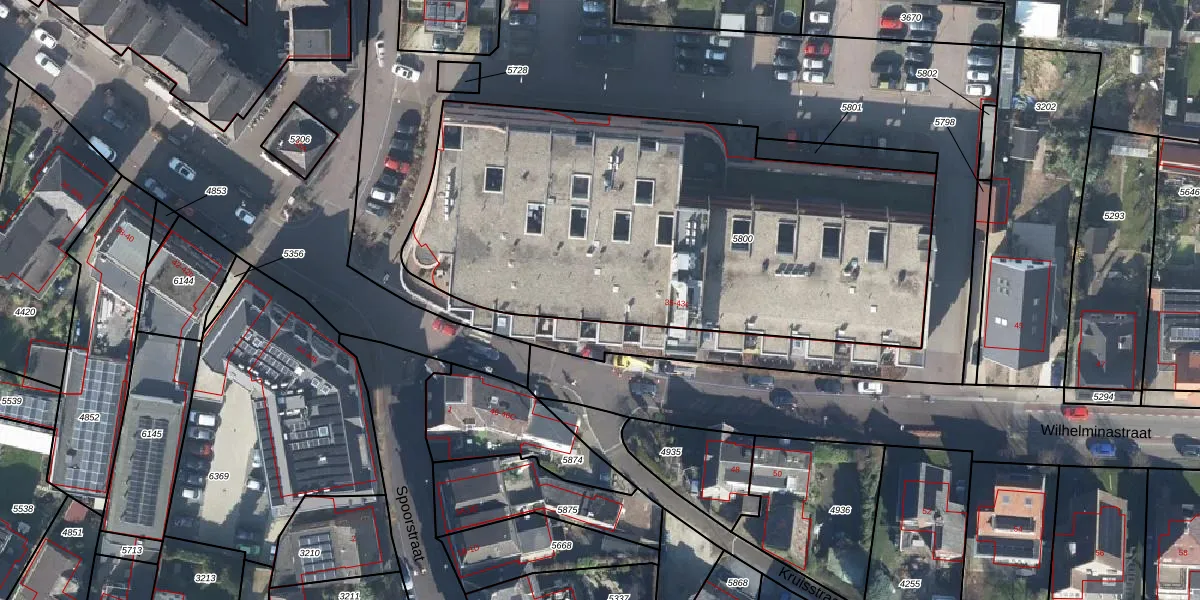 Het perceel waarop Wilhelminastraat 37 staat heeft een oppervlakte van 2734 m². Dit is een zeer groot perceel. De perceeloppervlakte wordt geregistreerd door het Kadaster. Gedetailleerde informatie over de maten van dit perceel kunt u vinden in het rapport Kadastrale kaart met maatvoering van Wilhelminastraat 37.