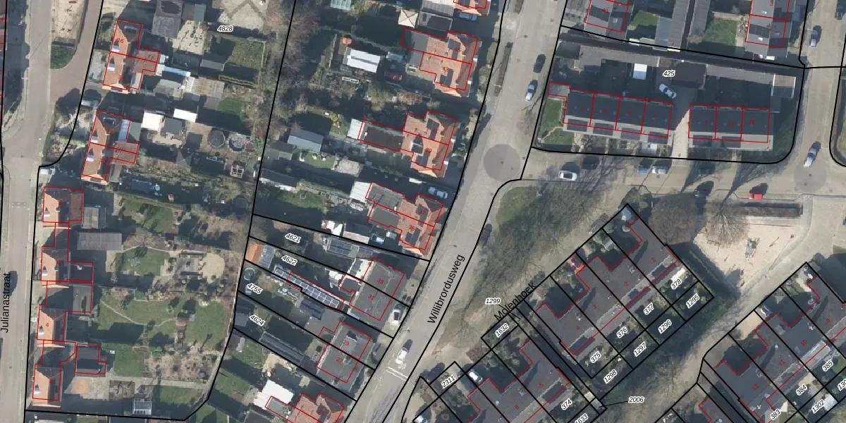 Het perceel waarop Willibrordusweg 37 staat heeft een oppervlakte van 5900 m². Dit is een zeer groot perceel. De perceeloppervlakte wordt geregistreerd door het Kadaster. Gedetailleerde informatie over de maten van dit perceel kunt u vinden in het rapport Kadastrale kaart met maatvoering van Willibrordusweg 37.