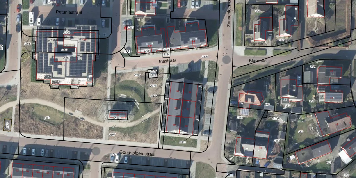 Het perceel waarop Zonnebloemstraat 61 staat heeft een oppervlakte van 540 m². Dit is een groot perceel. De perceeloppervlakte wordt geregistreerd door het Kadaster. Gedetailleerde informatie over de maten van dit perceel kunt u vinden in het rapport Kadastrale kaart met maatvoering van Zonnebloemstraat 61.