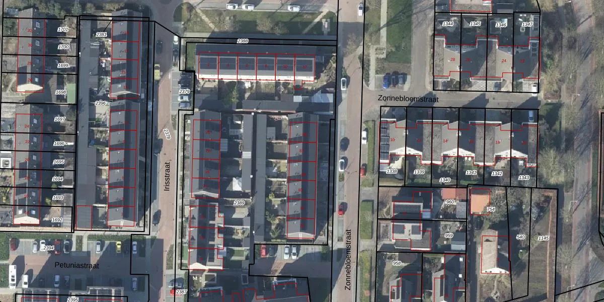 Het perceel waarop Zonnebloemstraat 87 staat heeft een oppervlakte van 4100 m². Dit is een zeer groot perceel. De perceeloppervlakte wordt geregistreerd door het Kadaster. Gedetailleerde informatie over de maten van dit perceel kunt u vinden in het rapport Kadastrale kaart met maatvoering van Zonnebloemstraat 87.