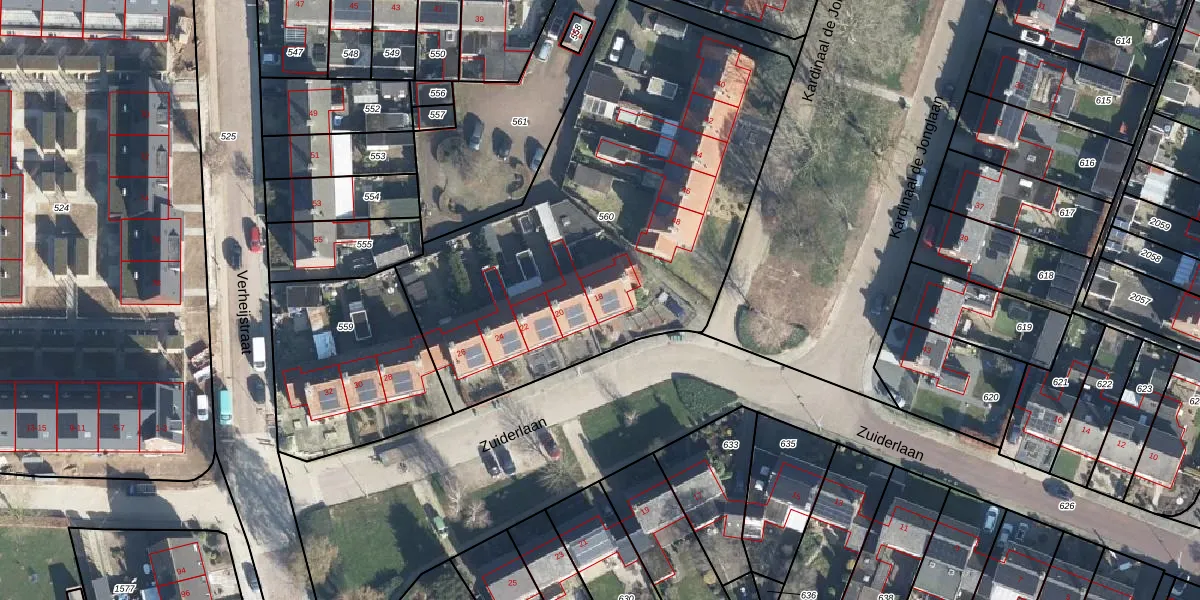 Zuiderlaan 18 is gelegen op kadastraal perceel DDM00M560. Deze kadastrale aanduiding is uniek en wordt gebruikt door het Kadaster om eigendomsrechten en andere zakelijke rechten vast te leggen. Het perceel maakt onderdeel uit van de kadastrale gemeente Didam.