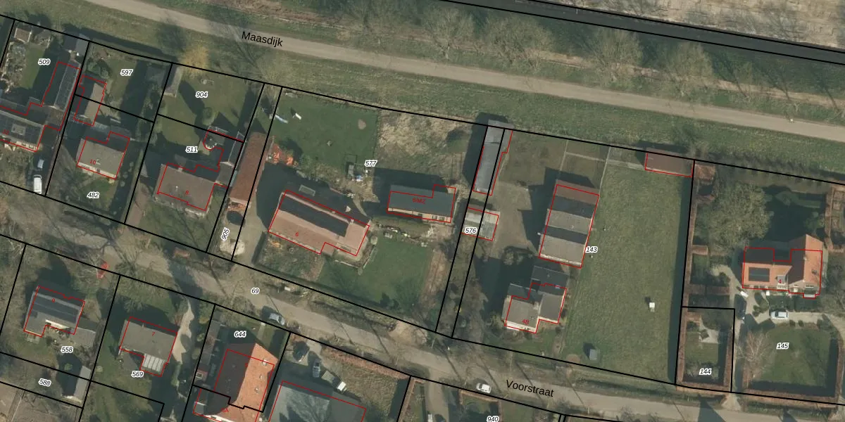 Het adres is gelegen op perceel 577 in de sectie C en de kadastrale gemeente Ravenstein. De kadastrale aanduiding is aldus RVS00-C-577. Het perceel is kleiner dan gemiddeld in Ravenstein. Het perceel is 2362 m² groot, terwijl het gemiddelde ligt op 5979,11 m². Het kleinste perceel in de kadastrale gemeente is 0 m² groot. De grootste perceeloppervlakte is 81,7 ha. Op het perceel zijn 2 adressen aanwezig. De huidige grenzen van het perceel zijn digitaal in de Basisregistratie Kadaster (BRK) geregistreerd op 25-06-2009.