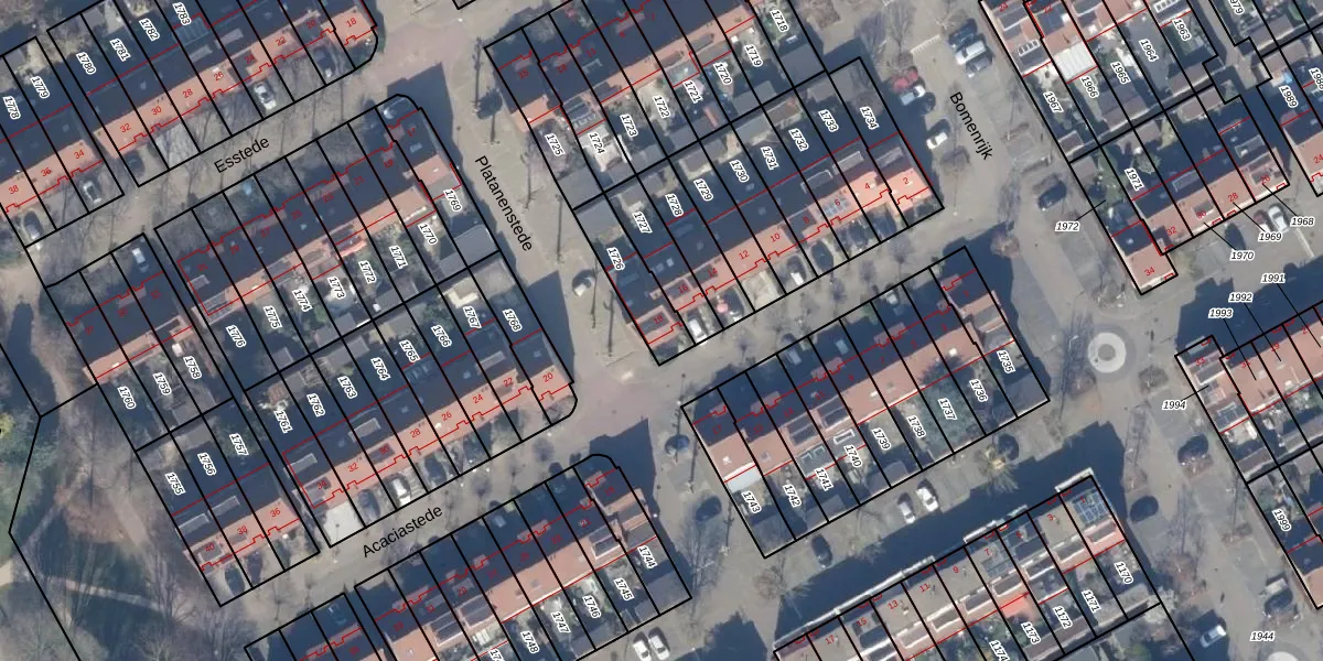 Gebruik de zoekbalk of klik op een perceel voor informatie over de adressen binnen dit perceel.