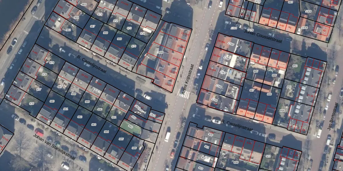 Het perceel waarop Arent Krijtsstraat 13 staat heeft een oppervlakte van 828 m². Dit is een groot perceel. De perceeloppervlakte wordt geregistreerd door het Kadaster. Gedetailleerde informatie over de maten van dit perceel kunt u vinden in het rapport Kadastrale kaart met maatvoering van Arent Krijtsstraat 13.