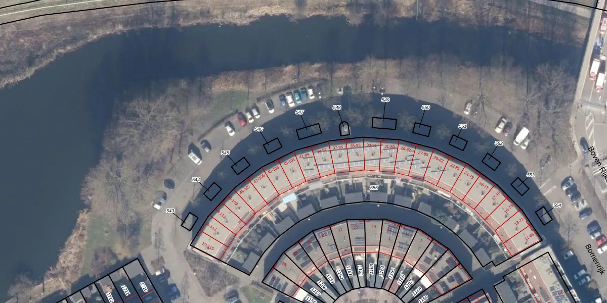 Het perceel waarop Bomenrijk 41 staat heeft een oppervlakte van 2518 m². Dit is een zeer groot perceel. De perceeloppervlakte wordt geregistreerd door het Kadaster. Gedetailleerde informatie over de maten van dit perceel kunt u vinden in het rapport Kadastrale kaart met maatvoering van Bomenrijk 41.
