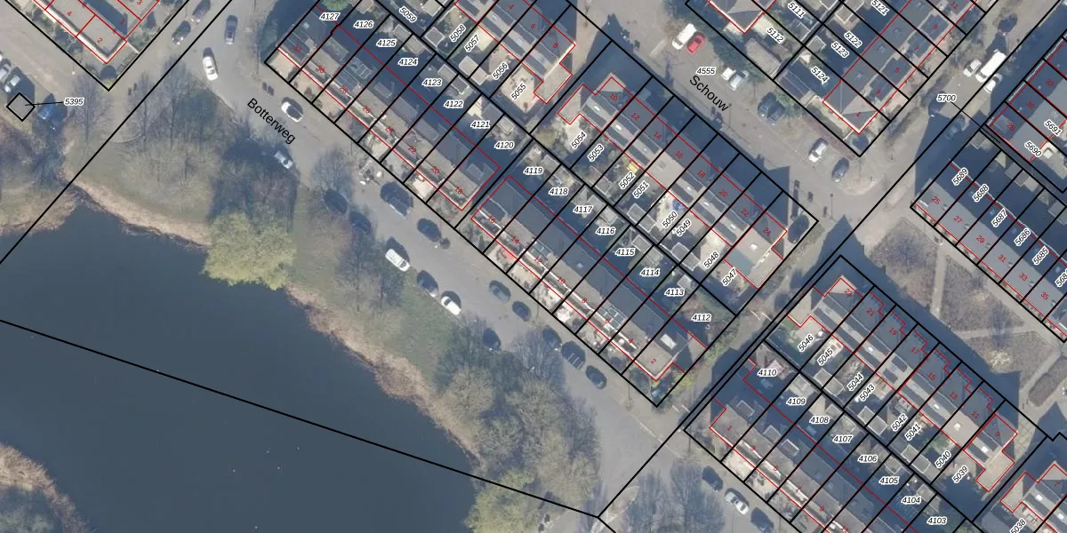 Het perceel waarop Botterweg 12 staat heeft een oppervlakte van 129 m². Dit is een middelgroot perceel. De perceeloppervlakte wordt geregistreerd door het Kadaster. Gedetailleerde informatie over de maten van dit perceel kunt u vinden in het rapport Kadastrale kaart met maatvoering van Botterweg 12.