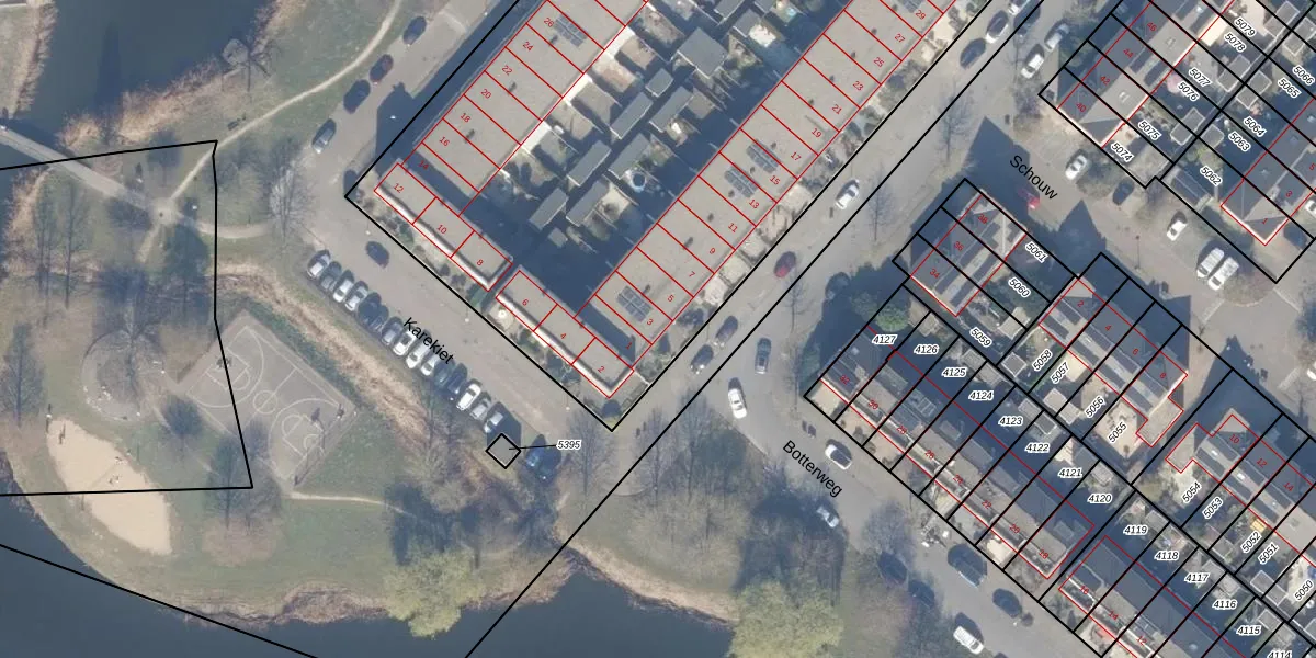 Het perceel waarop Botterweg 3 staat heeft een oppervlakte van 6305 m². Dit is een zeer groot perceel. De perceeloppervlakte wordt geregistreerd door het Kadaster. Gedetailleerde informatie over de maten van dit perceel kunt u vinden in het rapport Kadastrale kaart met maatvoering van Botterweg 3.