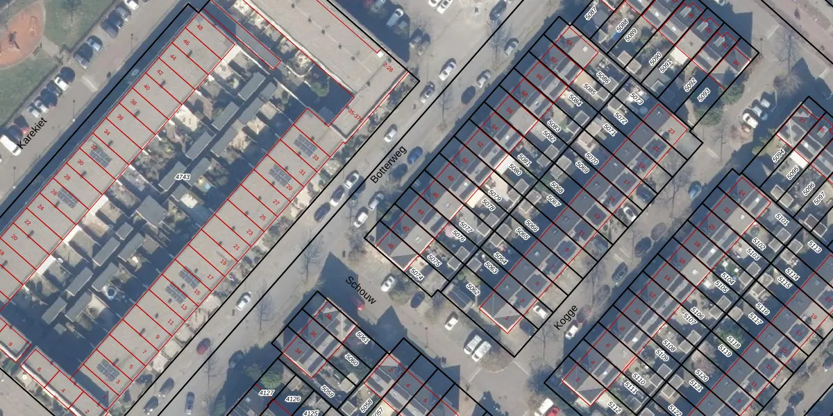 Botterweg 44 is gelegen op kadastraal perceel DMN00A5076. Deze kadastrale aanduiding is uniek en wordt gebruikt door het Kadaster om eigendomsrechten en andere zakelijke rechten vast te leggen. Het perceel maakt onderdeel uit van de kadastrale gemeente Diemen.