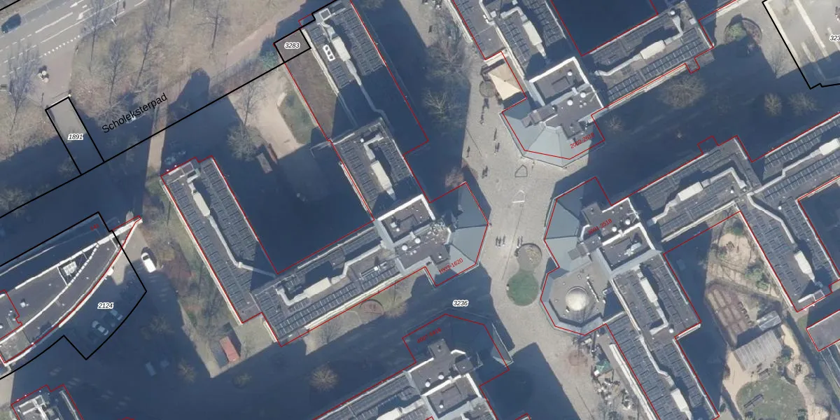 Het perceel waarop Dalsteindreef 1301 staat heeft een oppervlakte van 2,9 ha. Dit is een zeer groot perceel. De perceeloppervlakte wordt geregistreerd door het Kadaster. Gedetailleerde informatie over de maten van dit perceel kunt u vinden in het rapport Kadastrale kaart met maatvoering van Dalsteindreef 1301.