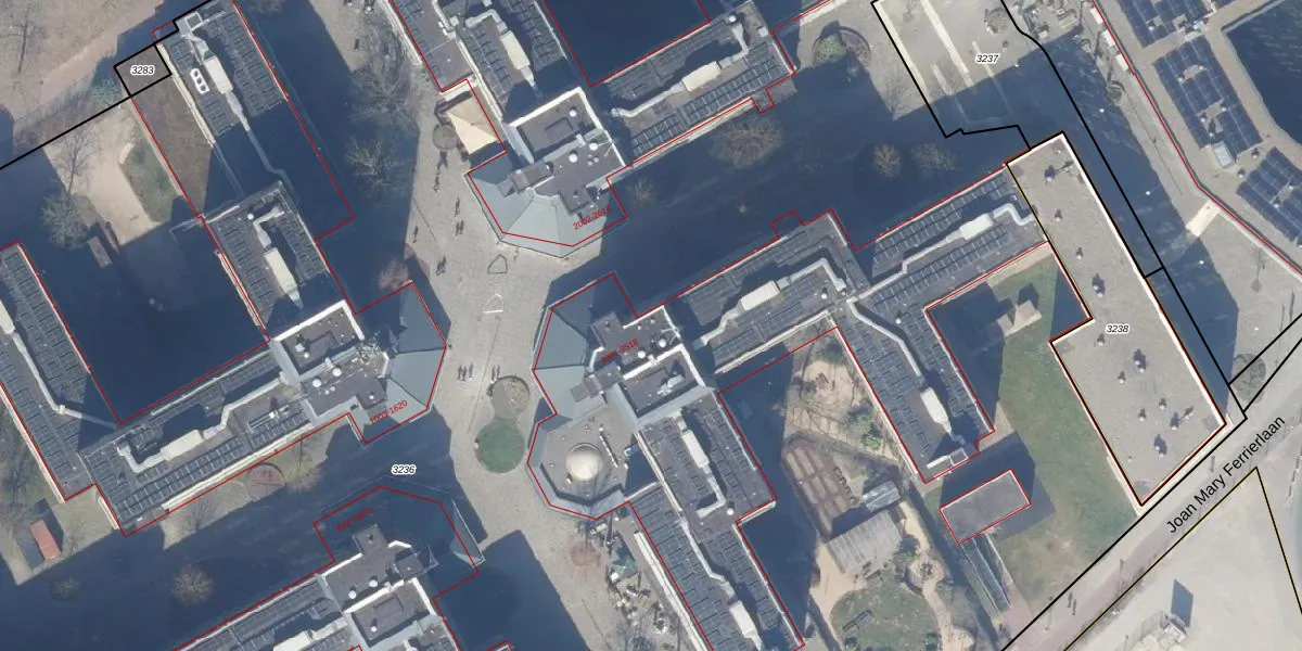 Het perceel waarop Dalsteindreef 3245 staat heeft een oppervlakte van 2,9 ha. Dit is een zeer groot perceel. De perceeloppervlakte wordt geregistreerd door het Kadaster. Gedetailleerde informatie over de maten van dit perceel kunt u vinden in het rapport Kadastrale kaart met maatvoering van Dalsteindreef 3245.