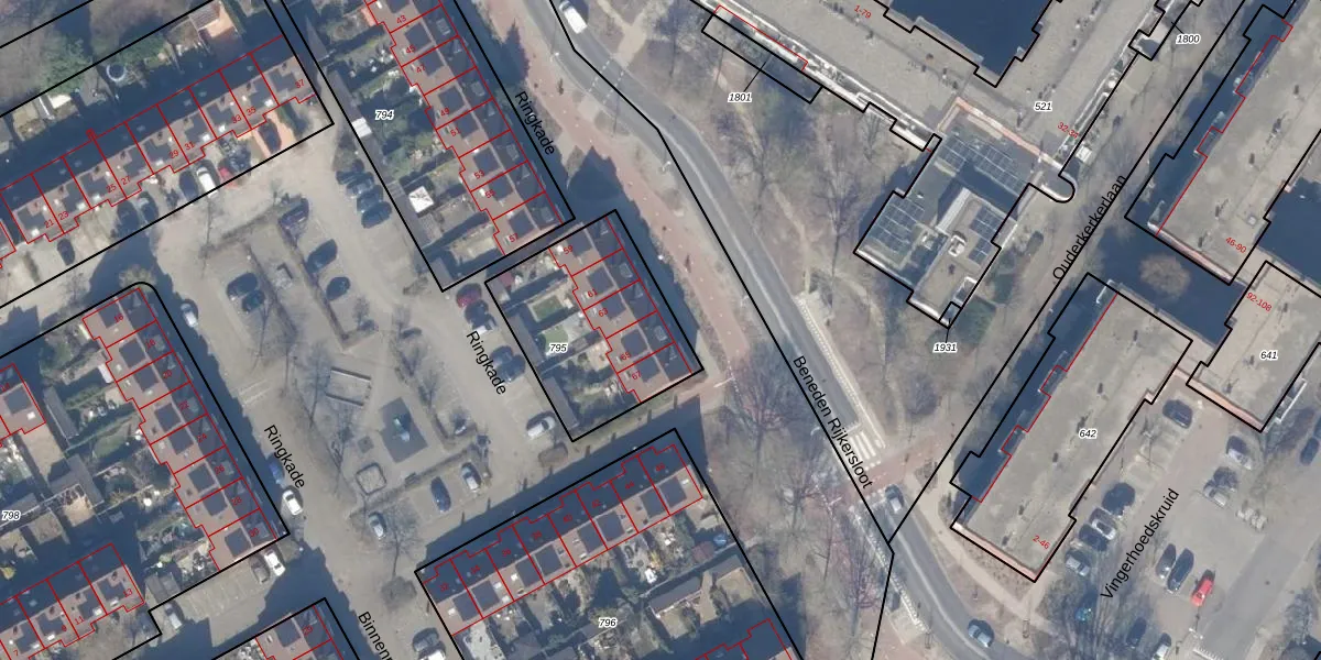 Het perceel waarop Ringkade 65 staat heeft een oppervlakte van 620 m². Dit is een groot perceel. De perceeloppervlakte wordt geregistreerd door het Kadaster. Gedetailleerde informatie over de maten van dit perceel kunt u vinden in het rapport Kadastrale kaart met maatvoering van Ringkade 65.