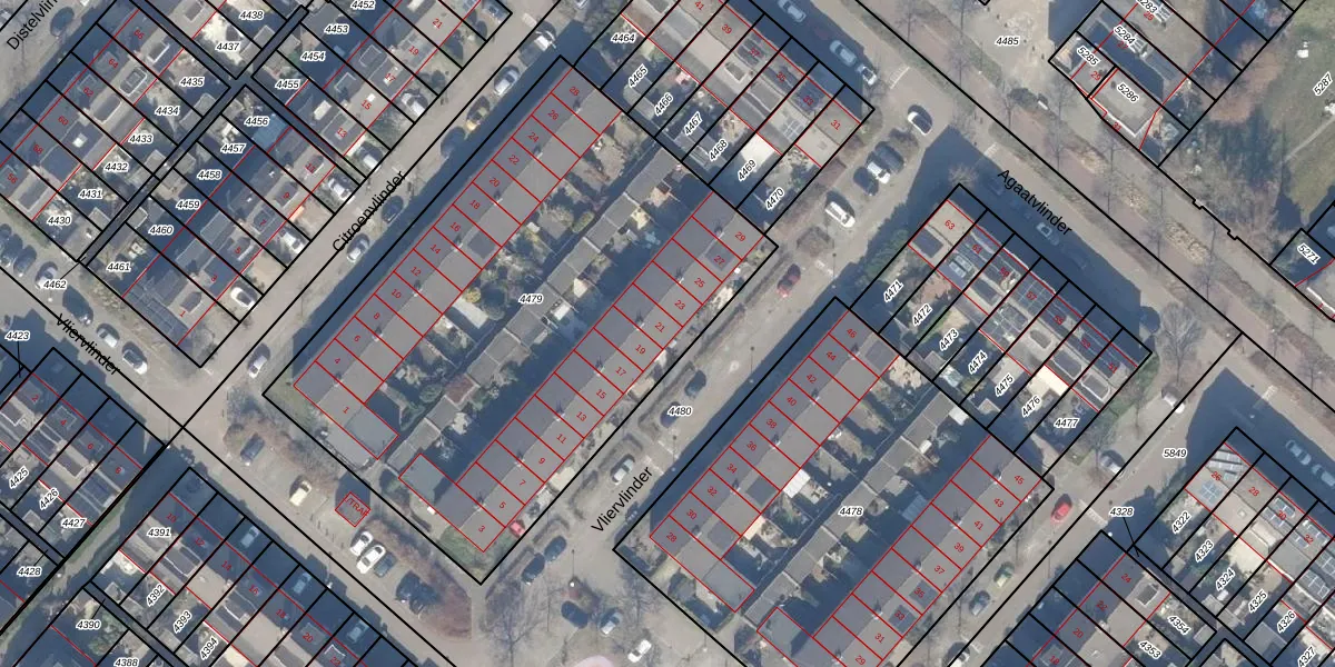 Het perceel waarop Vliervlinder 21 staat heeft een oppervlakte van 2951 m². Dit is een zeer groot perceel. De perceeloppervlakte wordt geregistreerd door het Kadaster. Gedetailleerde informatie over de maten van dit perceel kunt u vinden in het rapport Kadastrale kaart met maatvoering van Vliervlinder 21.