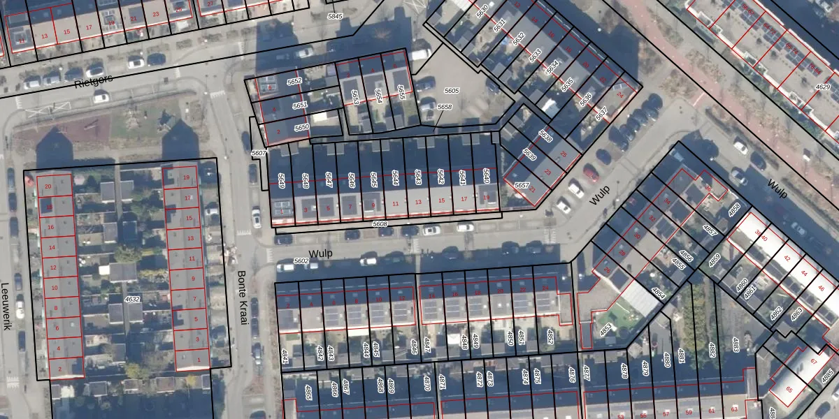 Gebruik de zoekbalk of klik op een perceel voor informatie over de adressen binnen dit perceel.