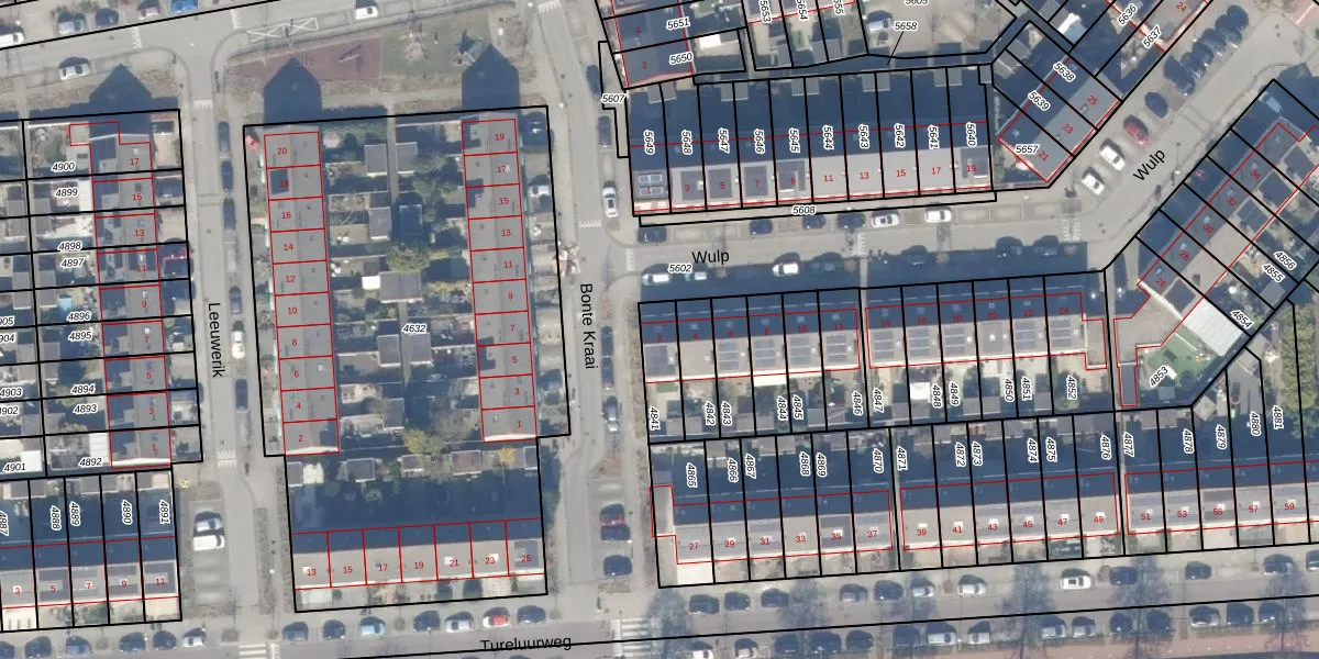 Gebruik de zoekbalk of klik op een perceel voor informatie over de adressen binnen dit perceel.