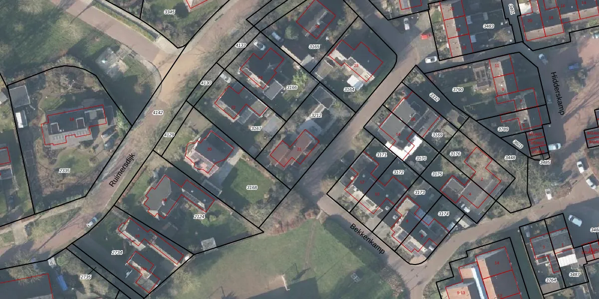 Gebruik de zoekbalk of klik op een perceel voor informatie over de adressen binnen dit perceel.