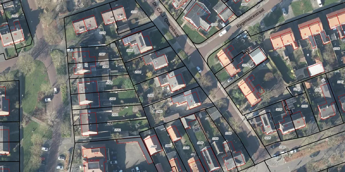 Gebruik de zoekbalk of klik op een perceel voor informatie over de adressen binnen dit perceel.