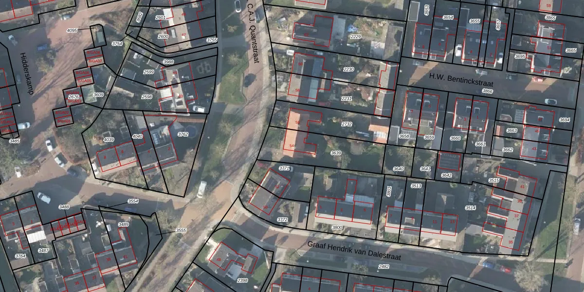 Gebruik de zoekbalk of klik op een perceel voor informatie over de adressen binnen dit perceel.