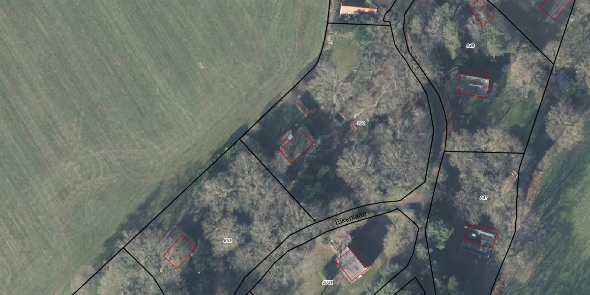 Het perceel waarop Eikenlaan 1 staat heeft een oppervlakte van 2856 m². Dit is een zeer groot perceel. De perceeloppervlakte wordt geregistreerd door het Kadaster. Gedetailleerde informatie over de maten van dit perceel kunt u vinden in het rapport Kadastrale kaart met maatvoering van Eikenlaan 1.