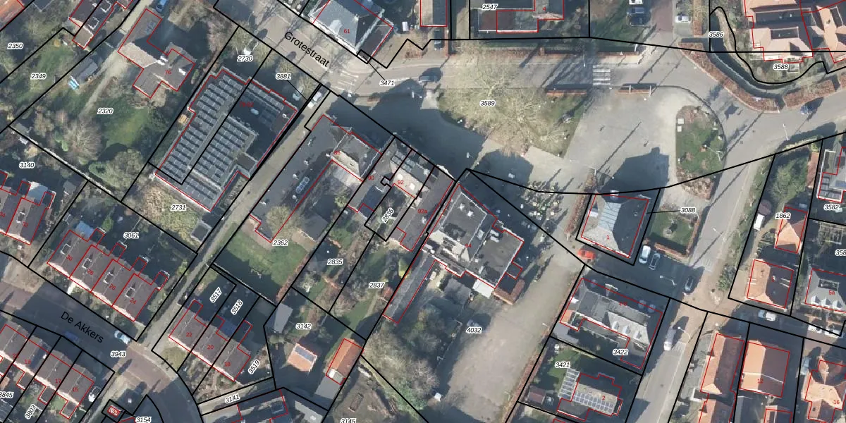 Het perceel waarop Grotestraat 92-a staat heeft een oppervlakte van 387 m². Dit is een groot perceel. De perceeloppervlakte wordt geregistreerd door het Kadaster. Gedetailleerde informatie over de maten van dit perceel kunt u vinden in het rapport Kadastrale kaart met maatvoering van Grotestraat 92-a.