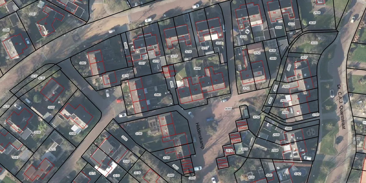 Het perceel waarop Hidderskamp 20 staat heeft een oppervlakte van 701 m². Dit is een groot perceel. De perceeloppervlakte wordt geregistreerd door het Kadaster. Gedetailleerde informatie over de maten van dit perceel kunt u vinden in het rapport Kadastrale kaart met maatvoering van Hidderskamp 20.