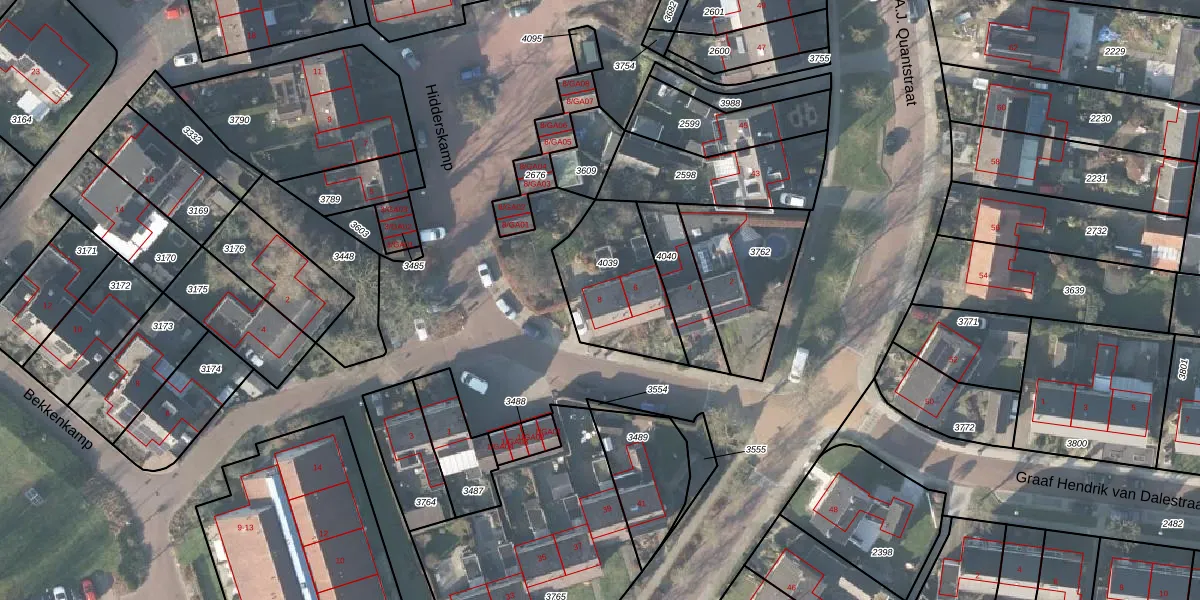 Het perceel waarop Hidderskamp 8 staat heeft een oppervlakte van 387 m². Dit is een groot perceel. De perceeloppervlakte wordt geregistreerd door het Kadaster. Gedetailleerde informatie over de maten van dit perceel kunt u vinden in het rapport Kadastrale kaart met maatvoering van Hidderskamp 8.