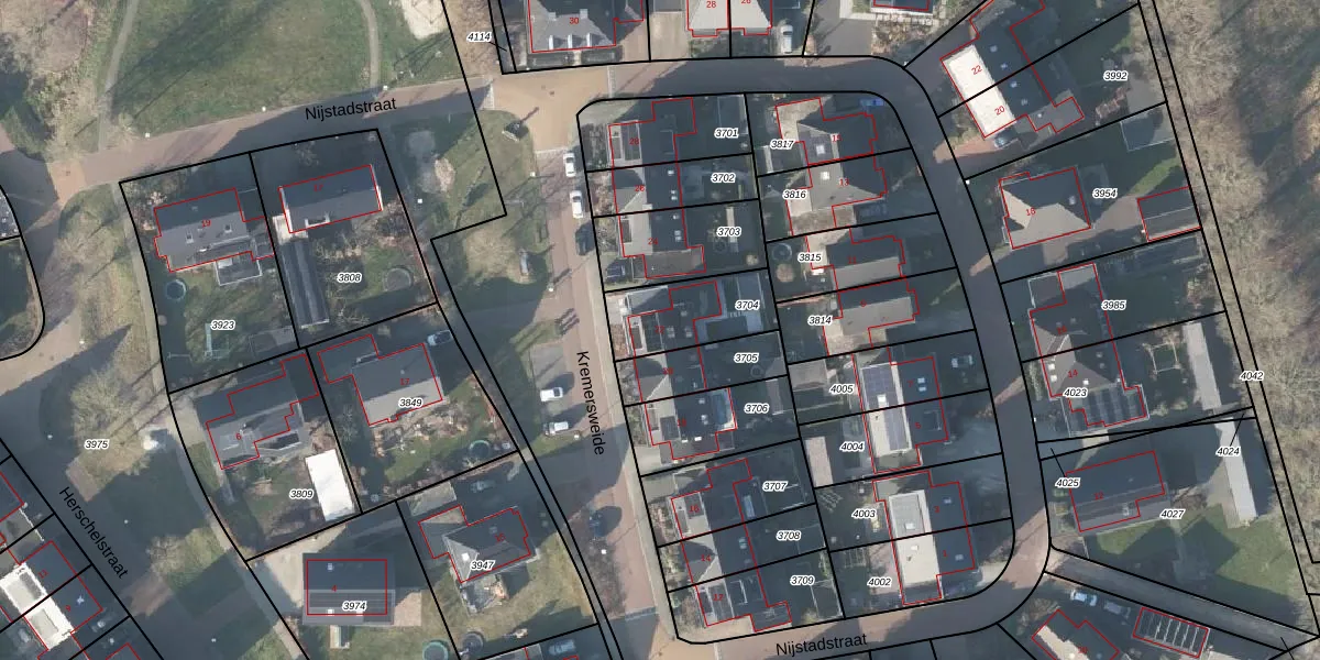Het perceel waarop Kremersweide 22 staat heeft een oppervlakte van 256 m². Dit is een middelgroot perceel. De perceeloppervlakte wordt geregistreerd door het Kadaster. Gedetailleerde informatie over de maten van dit perceel kunt u vinden in het rapport Kadastrale kaart met maatvoering van Kremersweide 22.