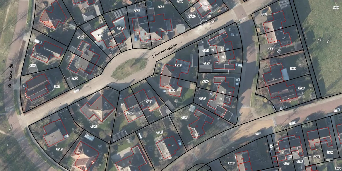 Het perceel waarop Leusensweide 8 staat heeft een oppervlakte van 403 m². Dit is een groot perceel. De perceeloppervlakte wordt geregistreerd door het Kadaster. Gedetailleerde informatie over de maten van dit perceel kunt u vinden in het rapport Kadastrale kaart met maatvoering van Leusensweide 8.