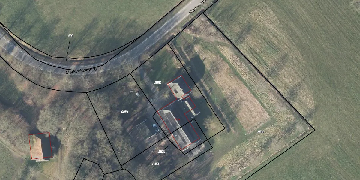 Het perceel waarop Markveldseweg 2 staat heeft een oppervlakte van 1296 m². Dit is een zeer groot perceel. De perceeloppervlakte wordt geregistreerd door het Kadaster. Gedetailleerde informatie over de maten van dit perceel kunt u vinden in het rapport Kadastrale kaart met maatvoering van Markveldseweg 2.