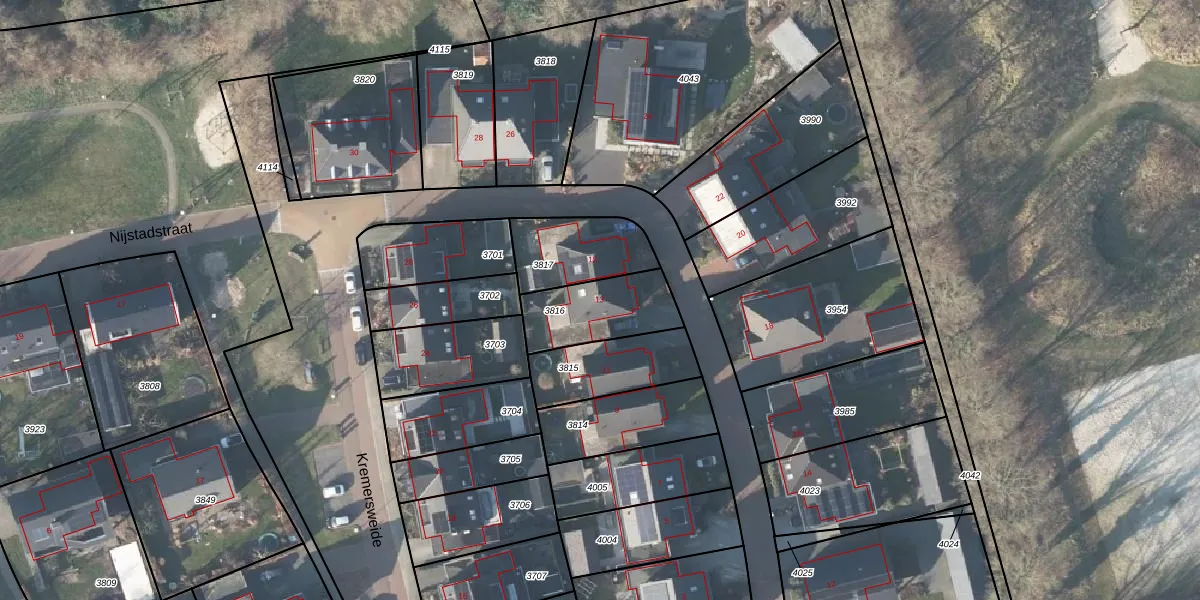 Gebruik de zoekbalk of klik op een perceel voor informatie over de adressen binnen dit perceel.