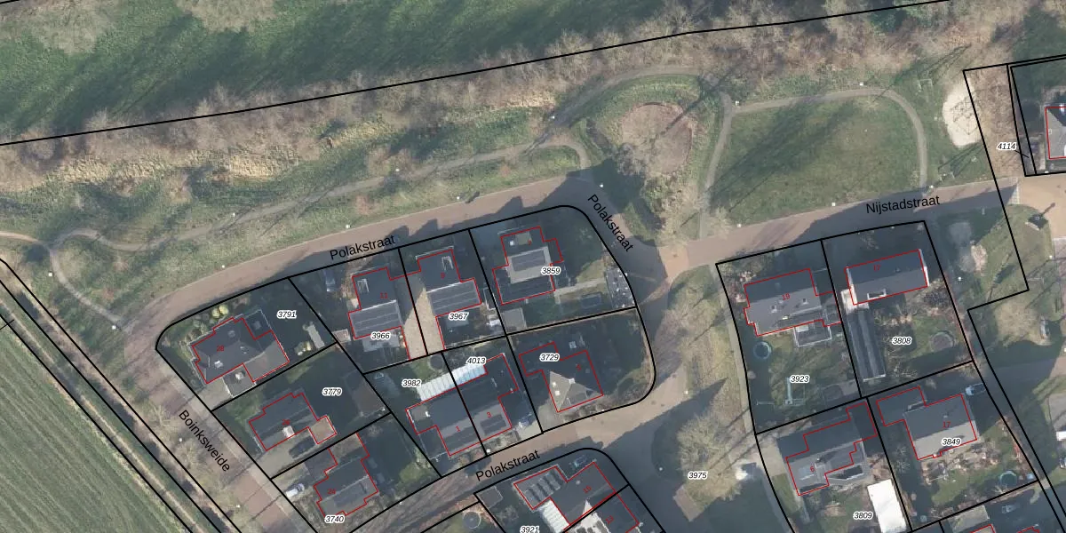 Polakstraat 7 is gelegen op kadastraal perceel DPH00B3859. Deze kadastrale aanduiding is uniek en wordt gebruikt door het Kadaster om eigendomsrechten en andere zakelijke rechten vast te leggen. Het perceel maakt onderdeel uit van de kadastrale gemeente Diepenheim.