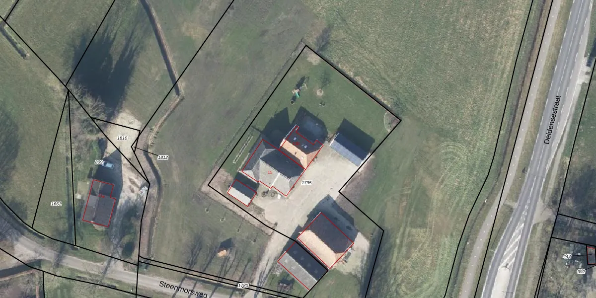 Steenmorsweg 11-b is gelegen op kadastraal perceel DPH00E1795. Deze kadastrale aanduiding is uniek en wordt gebruikt door het Kadaster om eigendomsrechten en andere zakelijke rechten vast te leggen. Het perceel maakt onderdeel uit van de kadastrale gemeente Diepenheim.