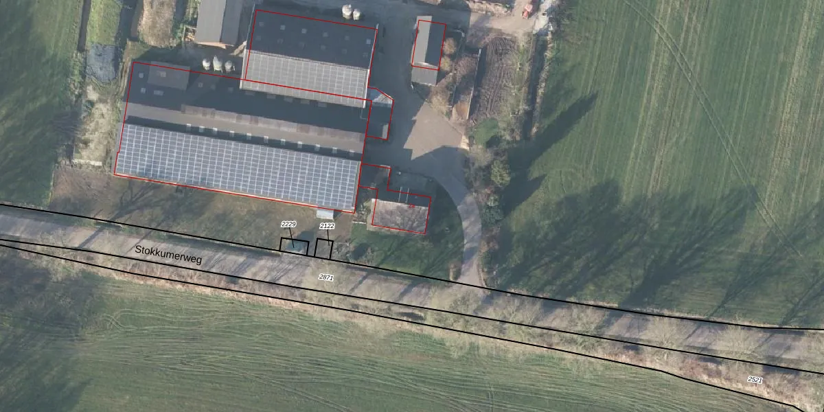 Het perceel waarop Stokkumerweg 2-a staat heeft een oppervlakte van 4,5 ha. Dit is een zeer groot perceel. De perceeloppervlakte wordt geregistreerd door het Kadaster. Gedetailleerde informatie over de maten van dit perceel kunt u vinden in het rapport Kadastrale kaart met maatvoering van Stokkumerweg 2-a.