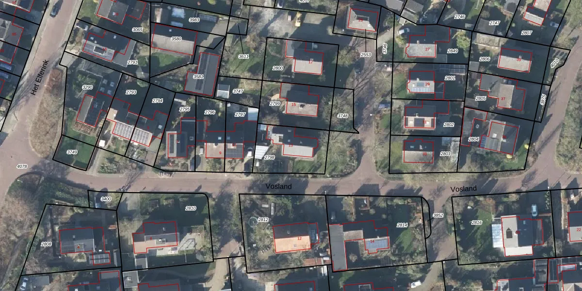 Het perceel waarop Vosland 13 staat heeft een oppervlakte van 401 m². Dit is een groot perceel. De perceeloppervlakte wordt geregistreerd door het Kadaster. Gedetailleerde informatie over de maten van dit perceel kunt u vinden in het rapport Kadastrale kaart met maatvoering van Vosland 13.