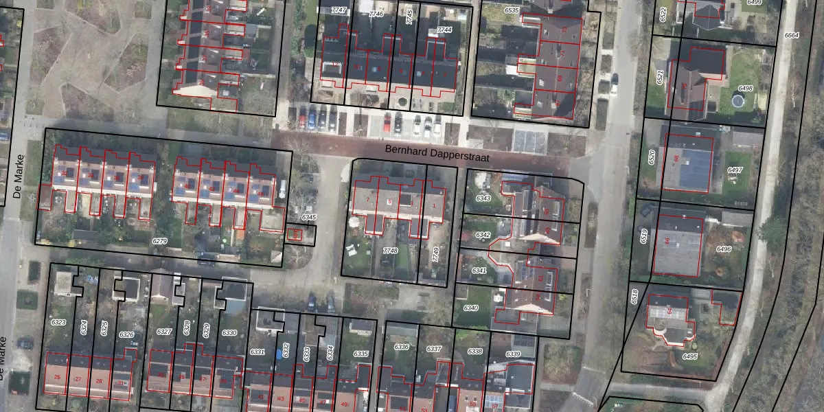 Het perceel waarop Bernhard Dapperstraat 3 staat heeft een oppervlakte van 529 m². Dit is een groot perceel. De perceeloppervlakte wordt geregistreerd door het Kadaster. Gedetailleerde informatie over de maten van dit perceel kunt u vinden in het rapport Kadastrale kaart met maatvoering van Bernhard Dapperstraat 3.