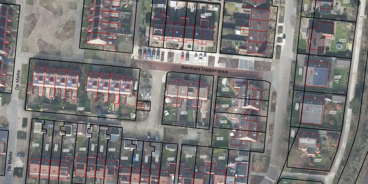 Het perceel waarop Bernhard Dapperstraat 5 staat heeft een oppervlakte van 529 m². Dit is een groot perceel. De perceeloppervlakte wordt geregistreerd door het Kadaster. Gedetailleerde informatie over de maten van dit perceel kunt u vinden in het rapport Kadastrale kaart met maatvoering van Bernhard Dapperstraat 5.