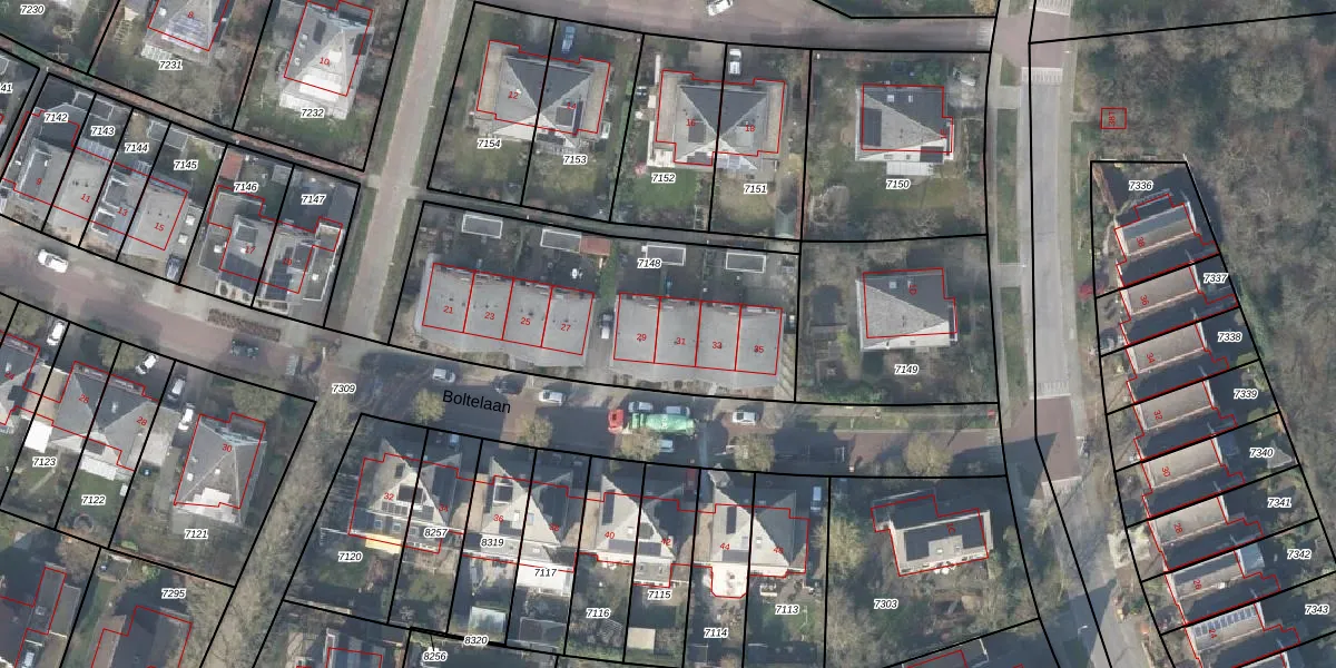 Het perceel waarop Boltelaan 31 staat heeft een oppervlakte van 1328 m². Dit is een zeer groot perceel. De perceeloppervlakte wordt geregistreerd door het Kadaster. Gedetailleerde informatie over de maten van dit perceel kunt u vinden in het rapport Kadastrale kaart met maatvoering van Boltelaan 31.