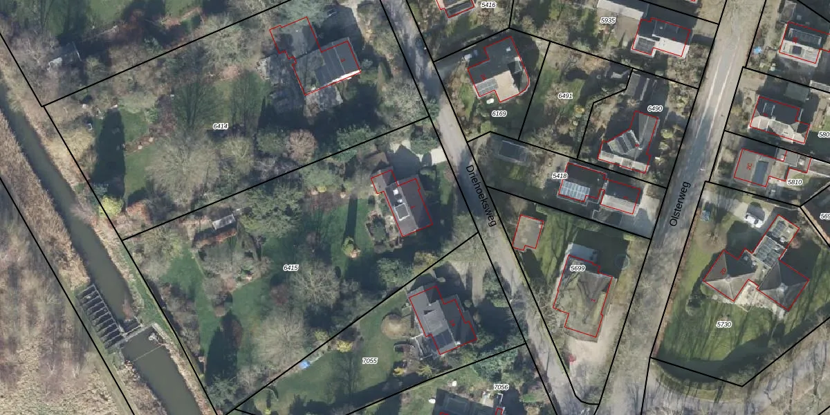 Het perceel waarop Driehoeksweg 1 staat heeft een oppervlakte van 3083 m². Dit is een zeer groot perceel. De perceeloppervlakte wordt geregistreerd door het Kadaster. Gedetailleerde informatie over de maten van dit perceel kunt u vinden in het rapport Kadastrale kaart met maatvoering van Driehoeksweg 1.