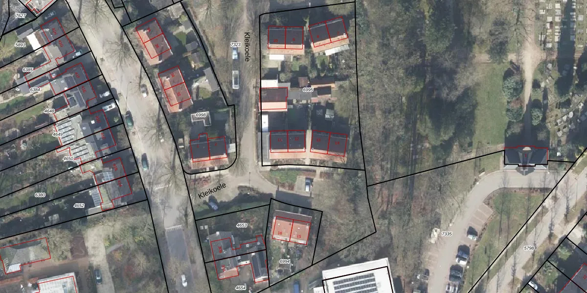 Het perceel waarop Kleikoele 12 staat heeft een oppervlakte van 1785 m². Dit is een zeer groot perceel. De perceeloppervlakte wordt geregistreerd door het Kadaster. Gedetailleerde informatie over de maten van dit perceel kunt u vinden in het rapport Kadastrale kaart met maatvoering van Kleikoele 12.