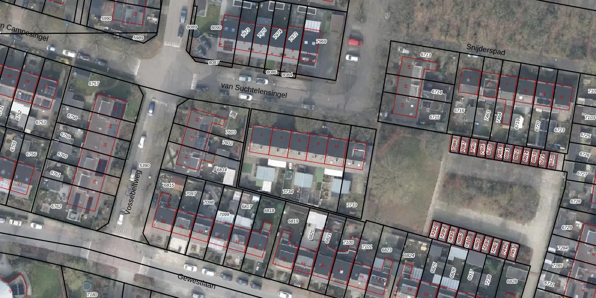 Het perceel waarop van Suchtelensingel 6 staat heeft een oppervlakte van 957 m². Dit is een groot perceel. De perceeloppervlakte wordt geregistreerd door het Kadaster. Gedetailleerde informatie over de maten van dit perceel kunt u vinden in het rapport Kadastrale kaart met maatvoering van van Suchtelensingel 6.
