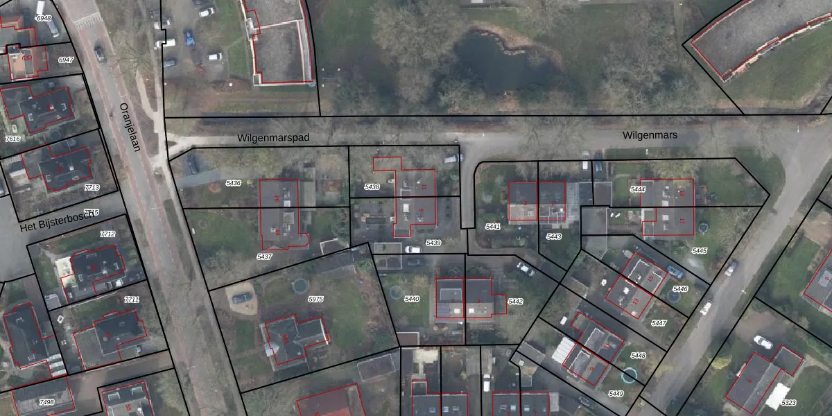 Het perceel waarop Wilgenmars 9 staat heeft een oppervlakte van 366 m². Dit is een groot perceel. De perceeloppervlakte wordt geregistreerd door het Kadaster. Gedetailleerde informatie over de maten van dit perceel kunt u vinden in het rapport Kadastrale kaart met maatvoering van Wilgenmars 9.