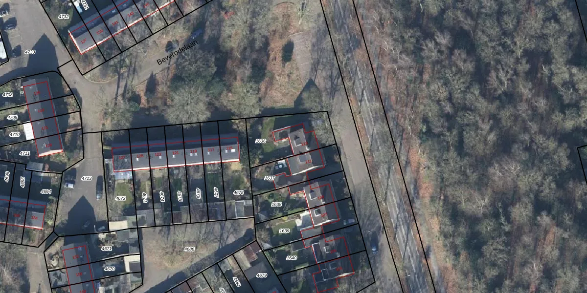 Beverodelaan 113 is gelegen op kadastraal perceel DRN00P1636. Deze kadastrale aanduiding is uniek en wordt gebruikt door het Kadaster om eigendomsrechten en andere zakelijke rechten vast te leggen. Het perceel maakt onderdeel uit van de kadastrale gemeente Dieren.