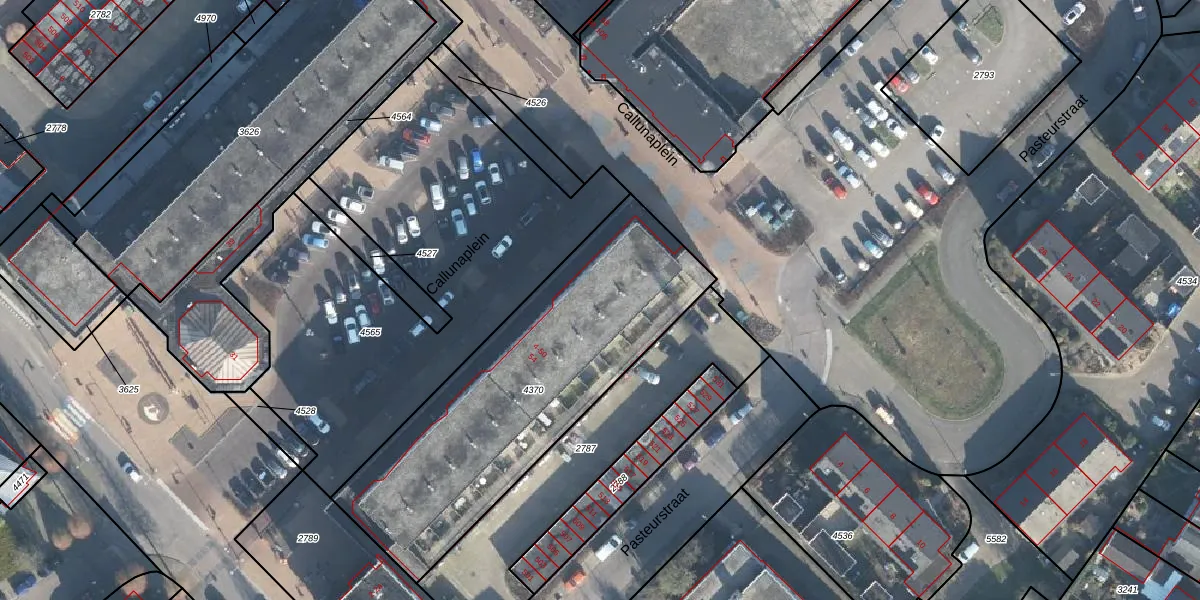 Het perceel waarop Callunaplein 24 staat heeft een oppervlakte van 1436 m². Dit is een zeer groot perceel. De perceeloppervlakte wordt geregistreerd door het Kadaster. Gedetailleerde informatie over de maten van dit perceel kunt u vinden in het rapport Kadastrale kaart met maatvoering van Callunaplein 24.