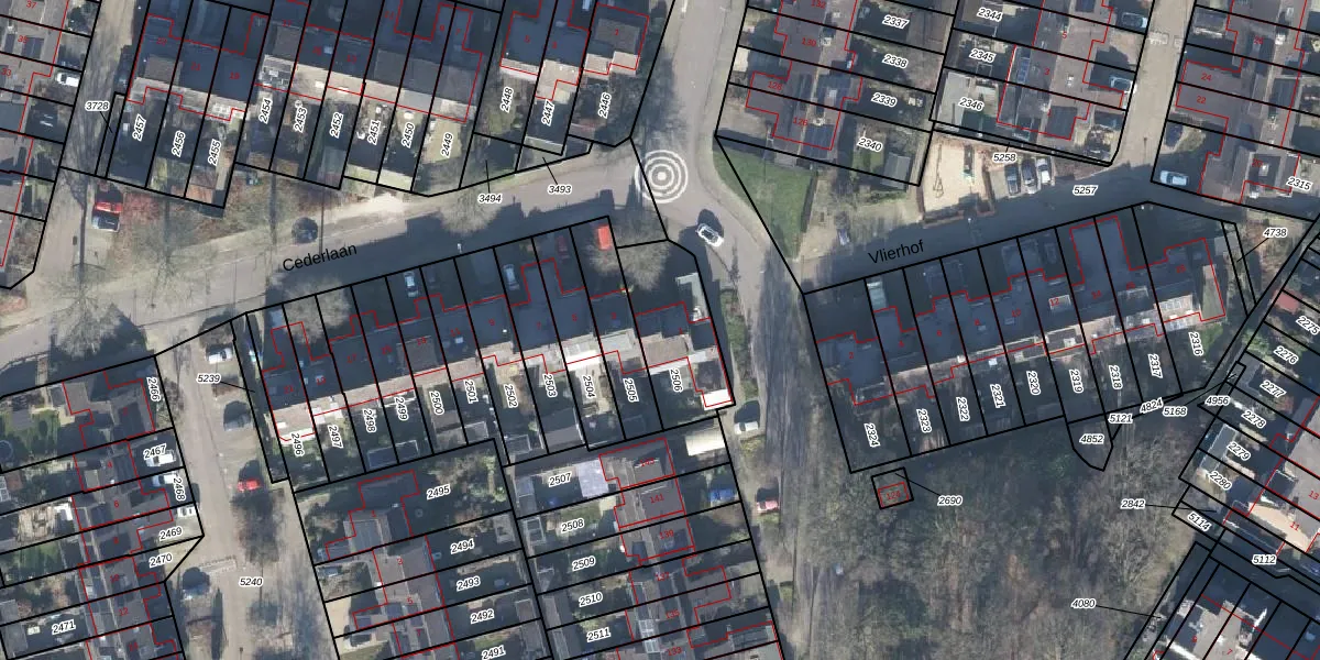 Cederlaan 1 is gelegen op kadastraal perceel DRN00P2506. Deze kadastrale aanduiding is uniek en wordt gebruikt door het Kadaster om eigendomsrechten en andere zakelijke rechten vast te leggen. Het perceel maakt onderdeel uit van de kadastrale gemeente Dieren.