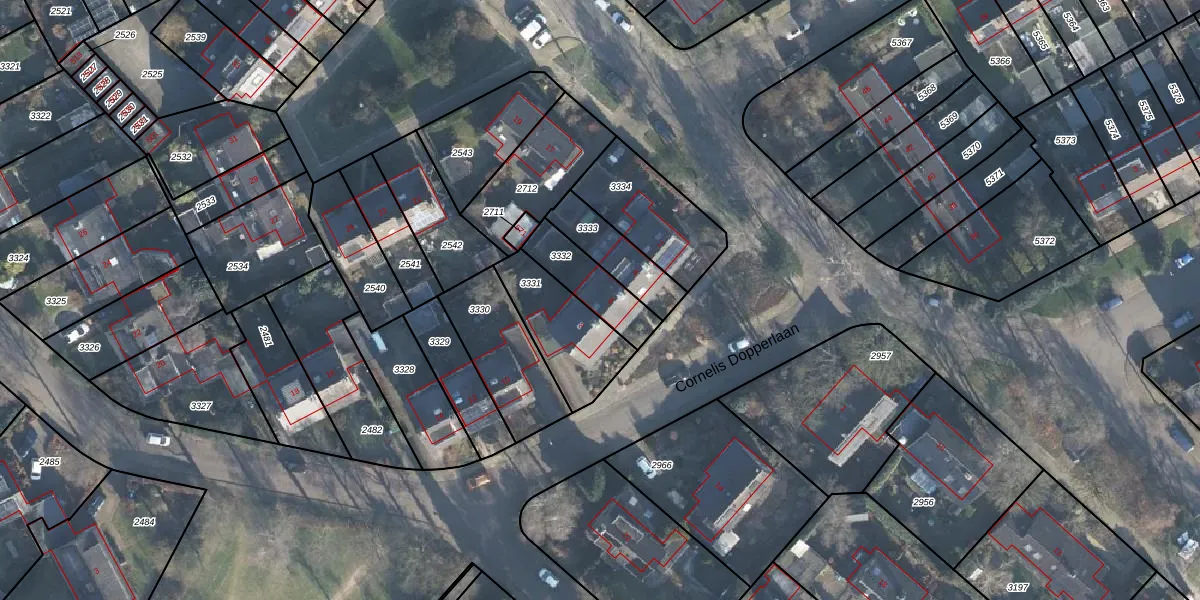Gebruik de zoekbalk of klik op een perceel voor informatie over de adressen binnen dit perceel.